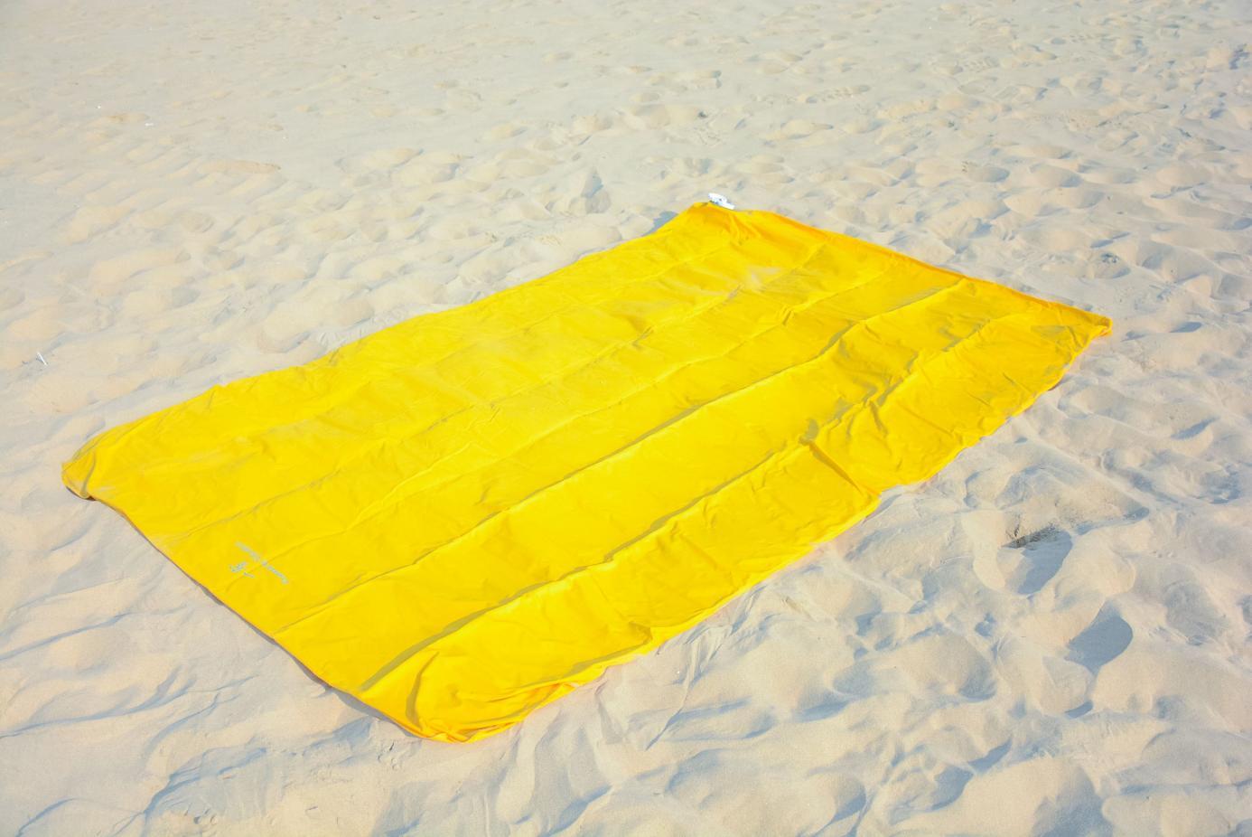When you open the storage bag, you can see the inside of the one-night self-inflating tent, which also contains some accessories.