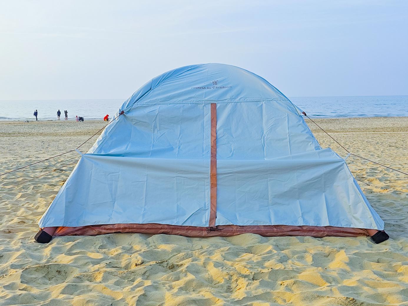 (2) The length of the ground pegs is long enough to be firmly fixed on the beach; When used that day, the sea breeze intensified a lot in the evening, and the tent was not affected at all;