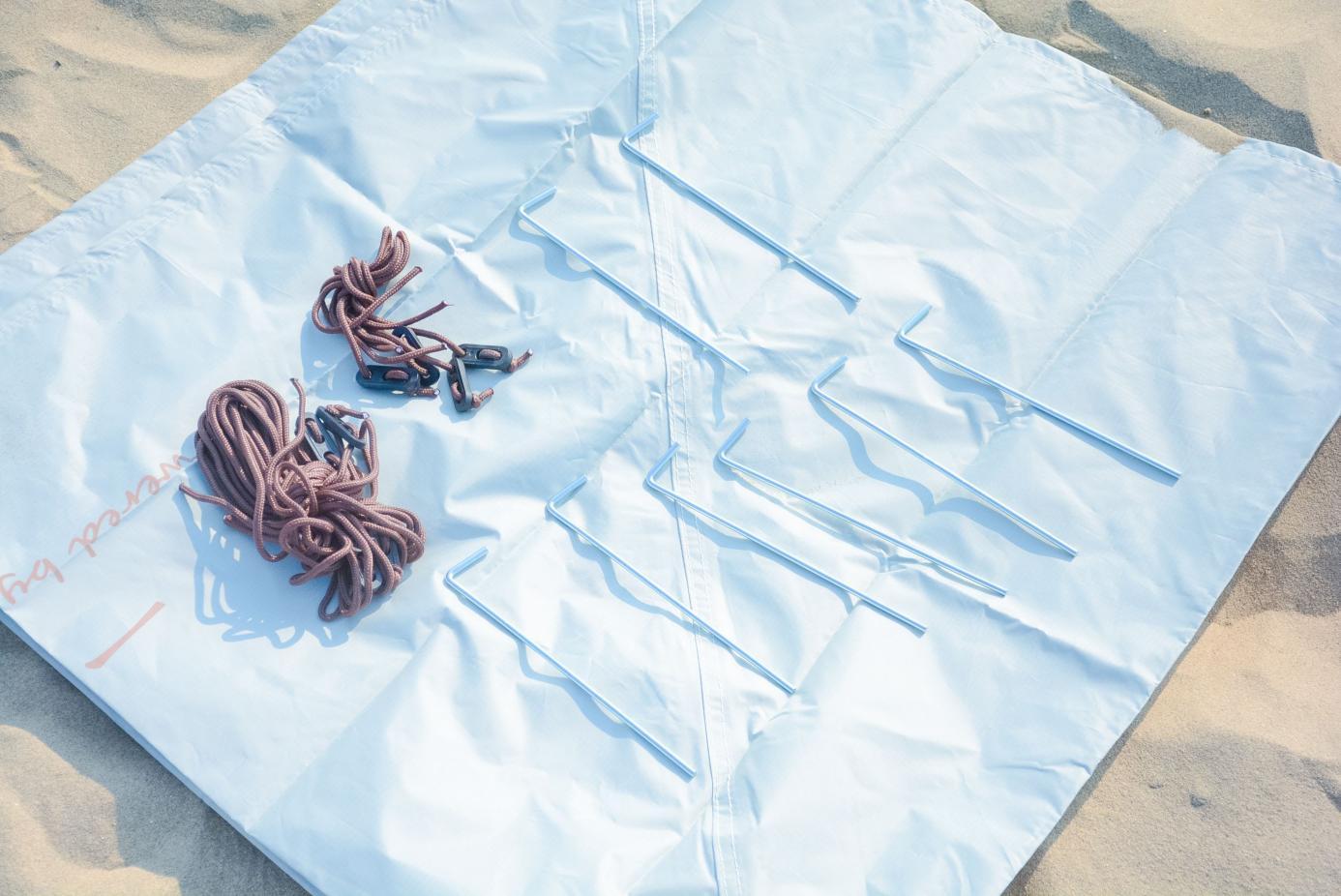 Another small detail: the top of the one-night self-inflatable tent is designed with hooks to place lights.