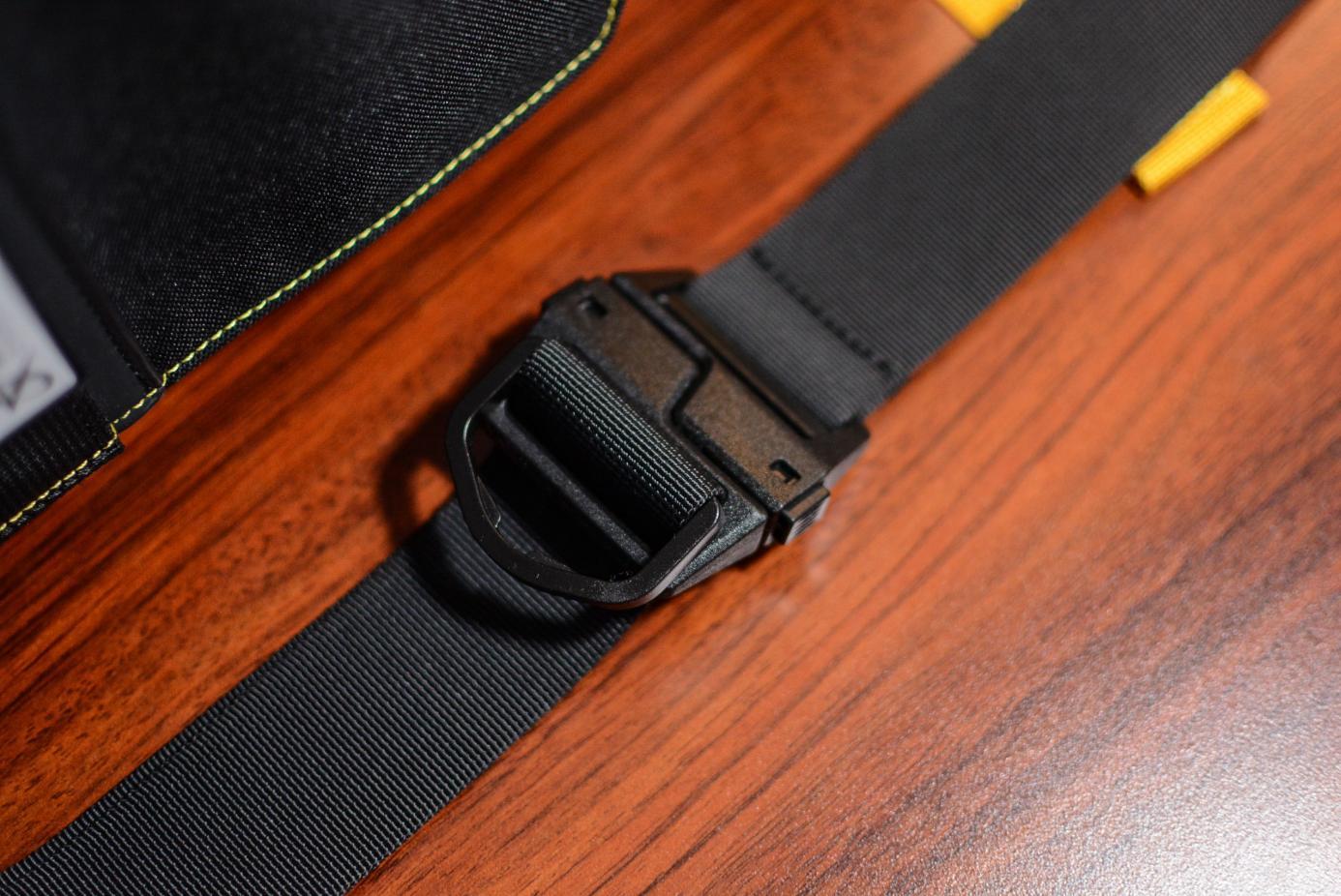 The overall line is officially called "mechanical line outline"; With the yellow pitted webbing, it is indeed very beautiful. The yellow webbing is designed with a fast opening and closing buckle, which can be quickly locked and closed, which is very easy to use.