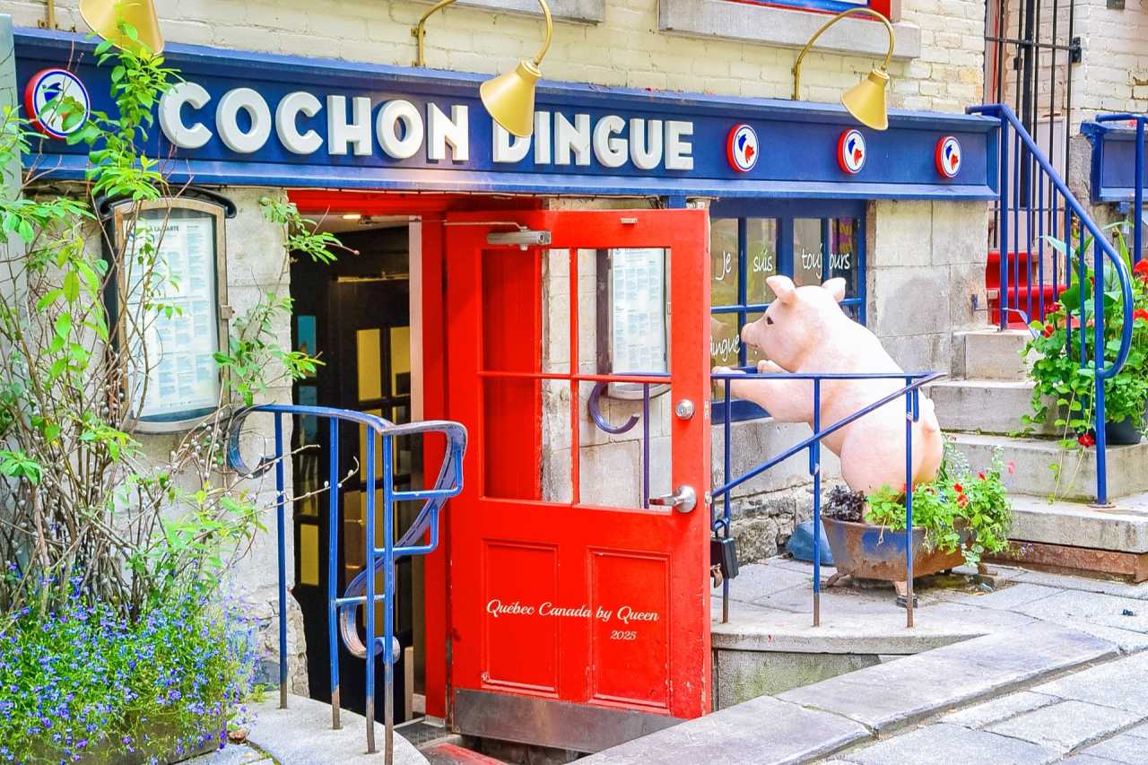 For example, there is a restaurant called Cochon Dingue, with a pig peeking in from the window at the entrance, so dramatic that I wonder what it's looking at?
