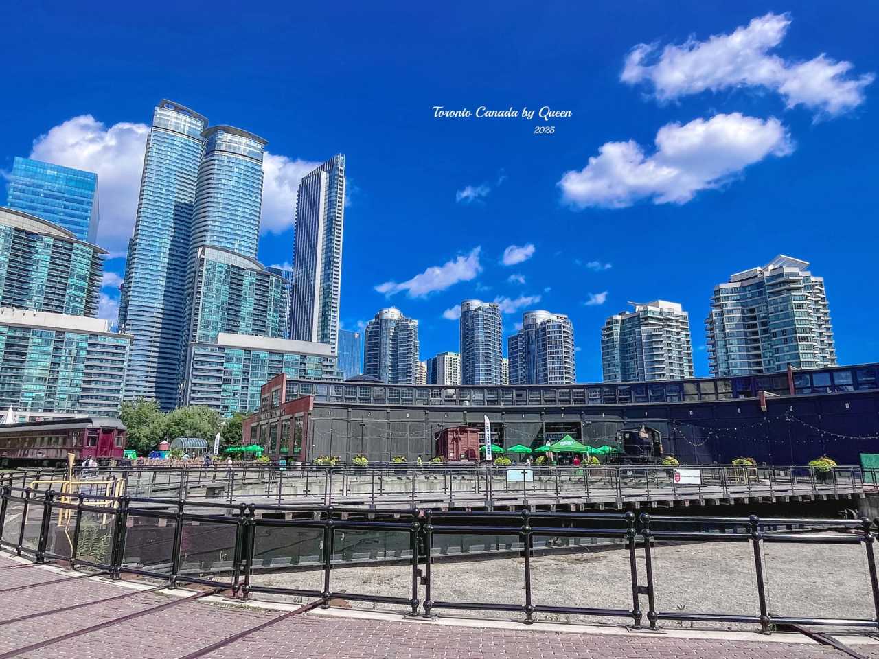 Walking to the other side of the tower, I discovered an area that made me stop for a long time - Roundhouse Park, a circular garage composed of railway tracks and old train cars. It used to be the main facility for train maintenance and turning, but now it has become the location for exhibition halls, craft shops and a small brewery. Standing among these historical relics, looking up at the modern glass and steel tower - CN Tower, in that instant, it felt as if the past and present were overlapping here.