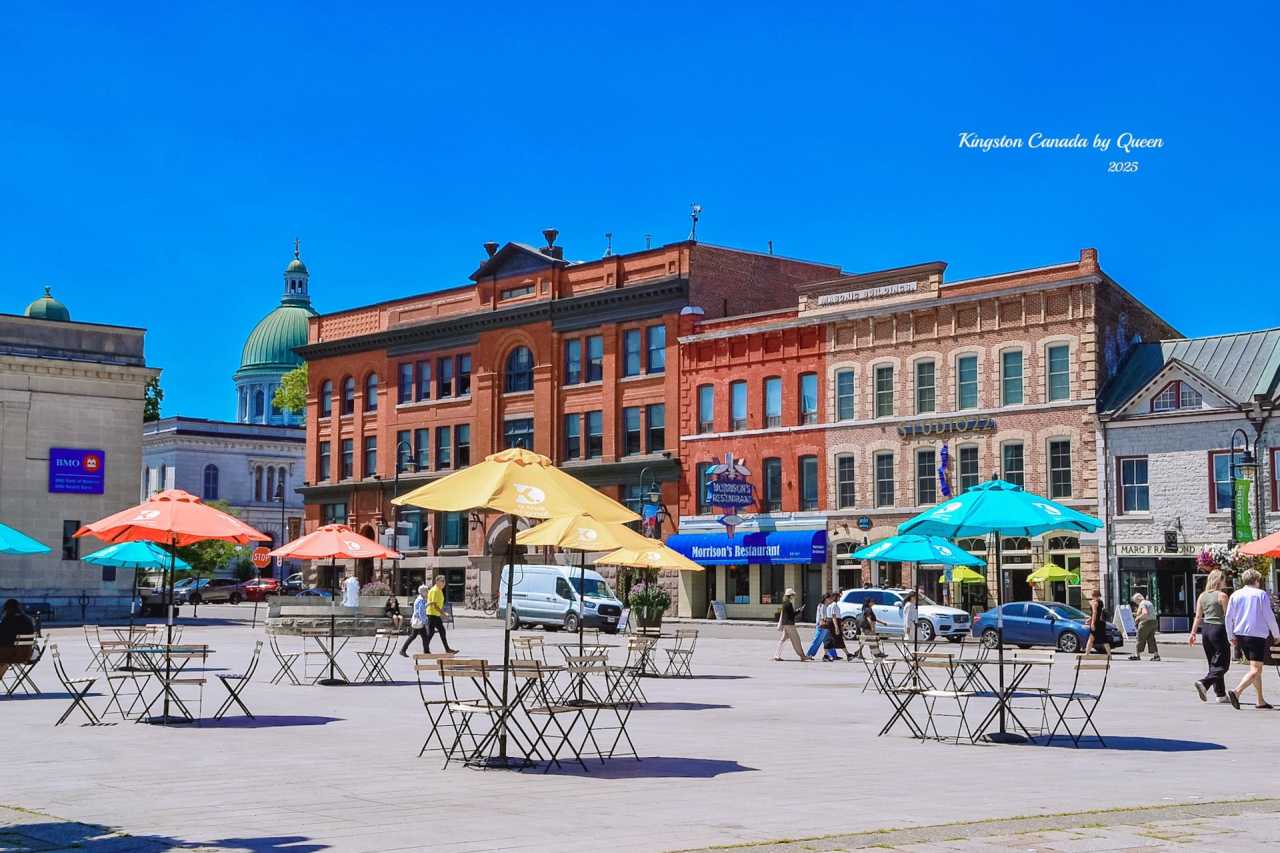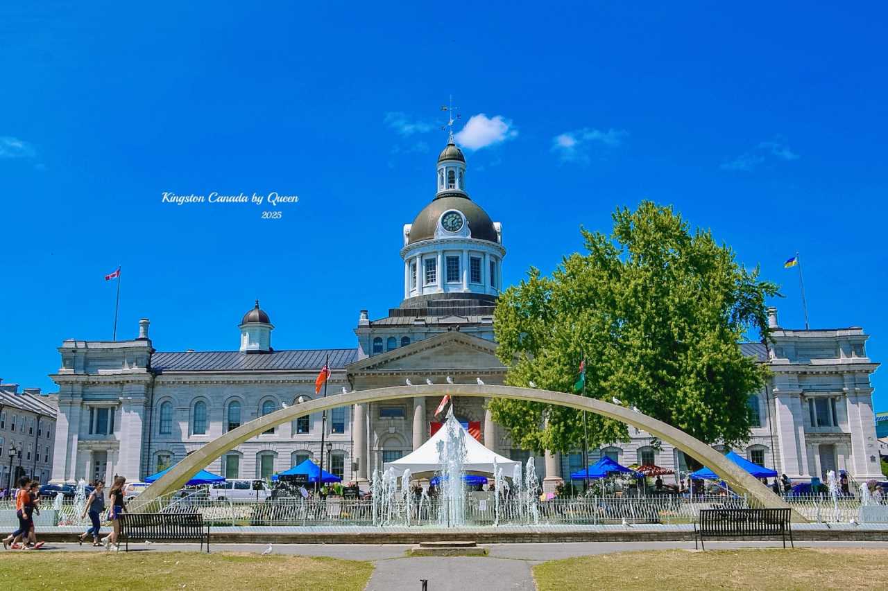 Kingston City Hall is the visual core of this area. It is a typical neoclassical building, with a tall silver dome shining under the sun, with a clock tower behind and a Market Square paved with cobblestones in front.